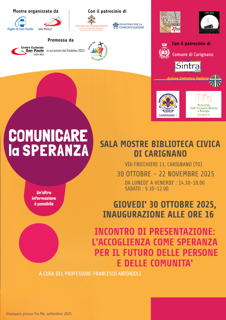 Inauguro la mostra «Comunicare la speranza», che ho curato con il collega Gerolamo Fazzini: resterà aperta fino al prossimo 22 novembre con una serie di iniziative e dibattiti sul territorio.